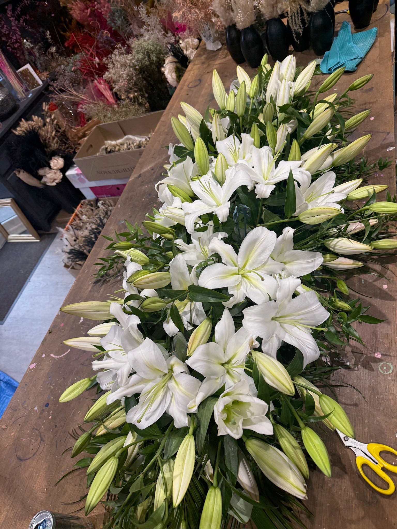 Planning a funeral is an enourmously difficult task. Here at Rosa Gabriella, we can assist in making planning the floral aspects far easier. From coffin sprays, to tribrutes and sympathy flowers, we here at Rosa Gabriella can get your flowers all the way to the funeral directors, so you can focus on celebrating who you've lost. If you would like us to quote you for a coffin spray or other tribrute, contact us using the button below.