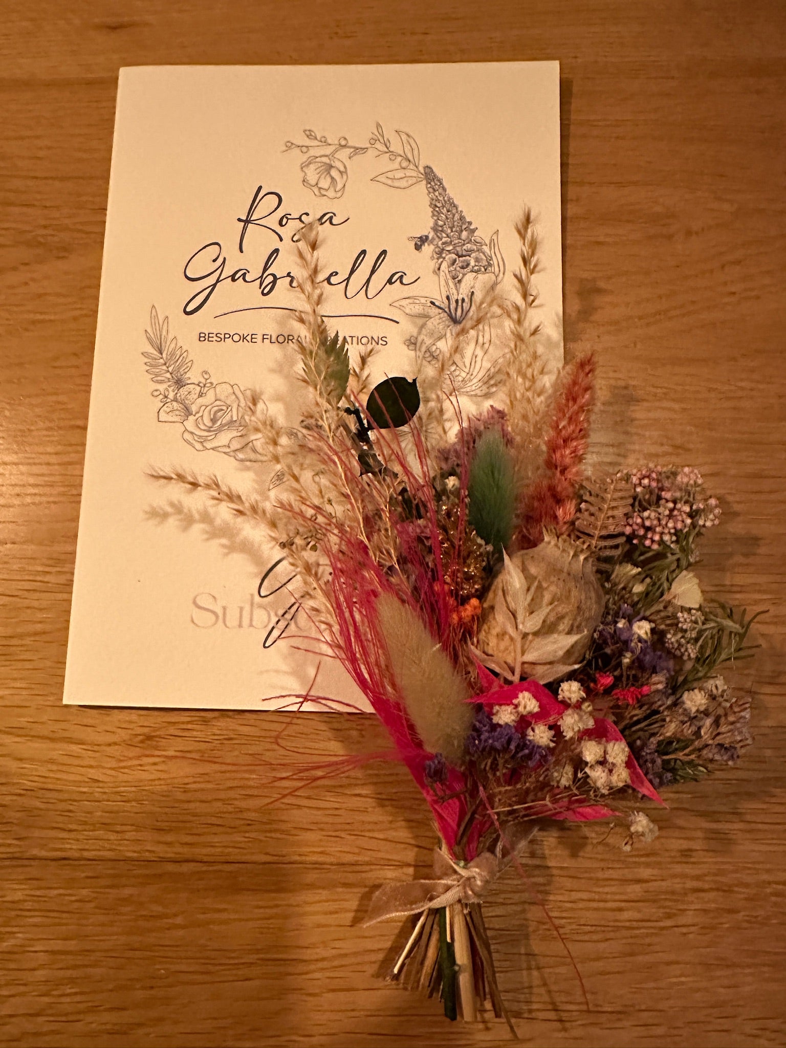 On purchase of this item, you will receive a beautiful gift box containing a mini dried bouquet, and a gift card detailing the subscription.