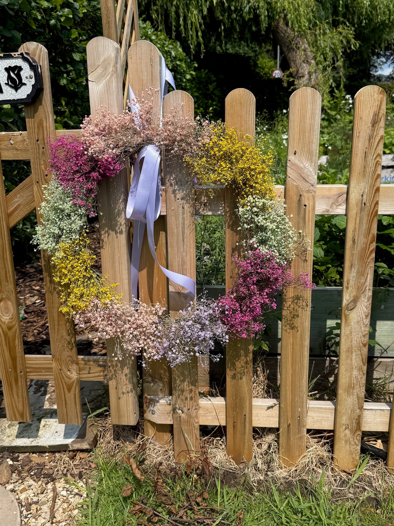 This 55cm Rainbow Gypsophila dried wreath brings vibrant, long-lasting colour to your covered porch or indoors. Perfect for summer decor. Expertly crafted from dried gypsophila, it maintains its delicate beauty without wilting, adding a fresh, airy touch to your outdoor space throughout the season. Other colours and sizes available for a custom order, please fill in a form on the contact us page or reach out on one of our channels.